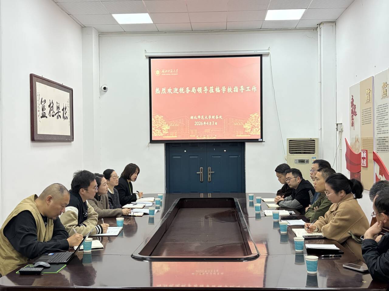为深入开展第35个全国税收宣传月活动,精准解读《中华人民共和国增值税法》实施后的税收政策,助力高校规范财务管理、提升涉税工作质效。4月3日上午,黄石市税务局及黄石港区税务局相关领导一行莅临学校调研指导,开展税收政策宣传与工作交流活动。我校财务处相关负责人及工作人员参加座谈交流。活动伊始,税务部门一行详细了解了学校在教育教学、科研创新、社会服务等方面的发展概况,重点听取了关于日常涉税业务办理、增值税申报缴纳、税收优惠政策享受等工作的汇报。随后,税务部门围绕新增值税法核心变化,结合高校办学特点,就教育服务免税范围界定、科研经费涉税处理、税收优惠政策适用等高频涉税事项进行了深入浅出的解读,针对我校在实际工作中遇到的政策适用、账务处理等问题逐一答疑解惑,为我校规范涉税操作、防范税务风险提供了专业指导。税务部门表示,高校作为公益二类事业单位,是税收政策服务的重点对象,后续将持续加强政策宣传与精准辅导,畅通沟通渠道,助力高校充分享受税收优惠红利,保障办学事业健康发展。我校财务处负责人对税务部门长期以来的支持与指导表示感谢,并表示将以此次交流为契机,认真学习贯彻新增值税法及相关税收政策,进一步规范财务核算与涉税管理,提升财务工作法治化、专业化水平,为学校高质量发展筑牢财务保障。